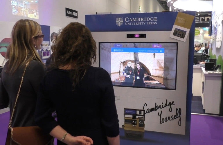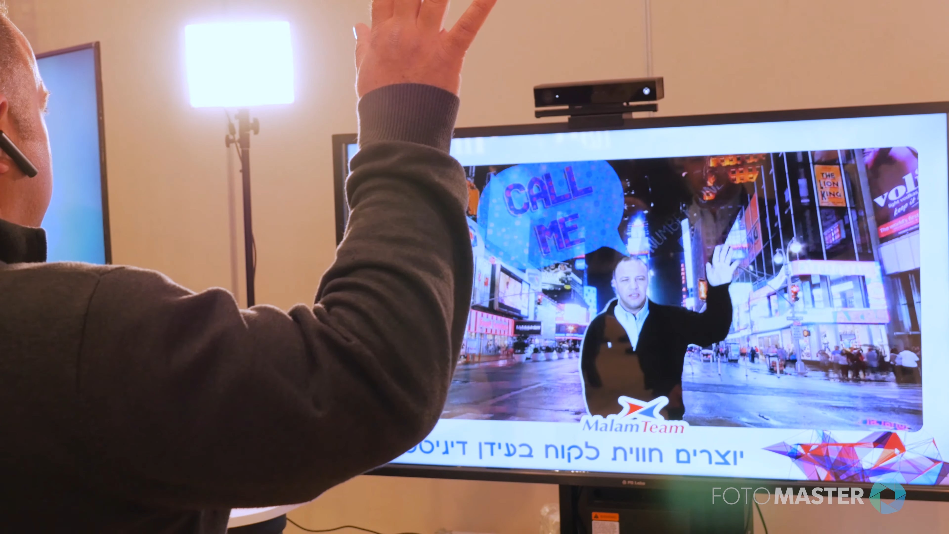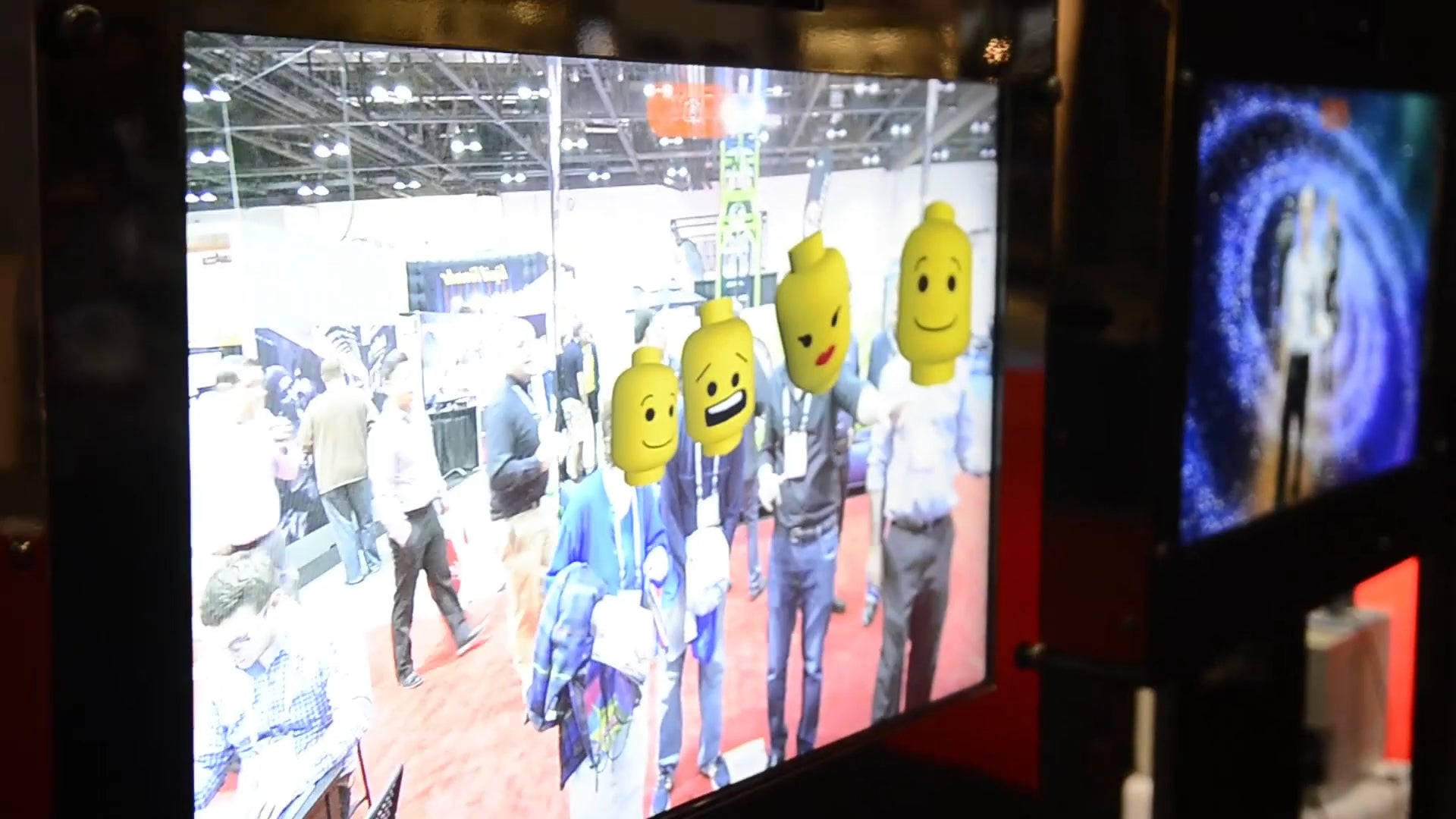 Augmented Reality Photo Booth wows guests as their image is augmented with virtual 3D props over a large-screen display. The guests interact and control the experience using hand gestures to create an extraordinary photo keepsake.