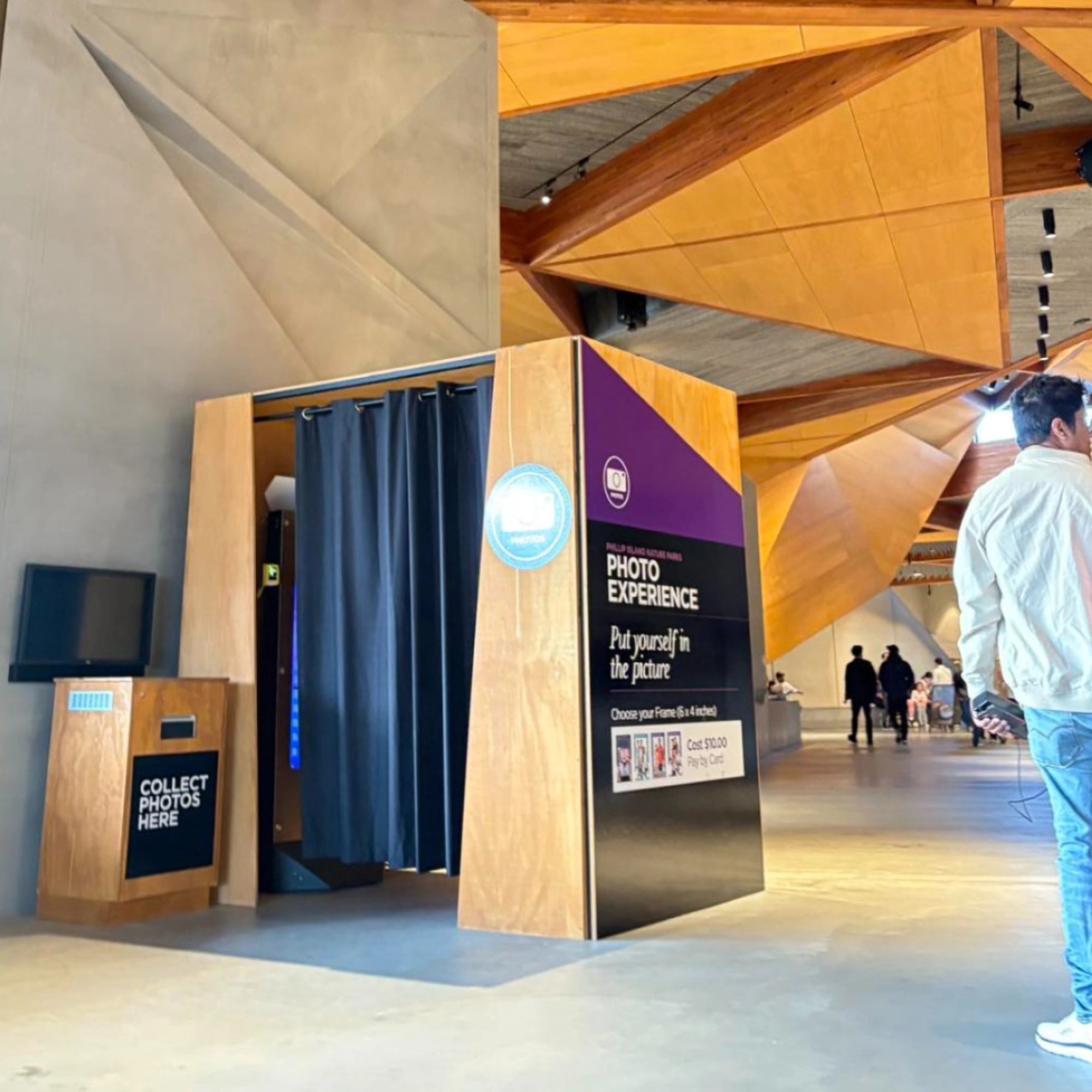 At Phillip Island, Australia, Foto Master’s Mirror X photo booth has been seamlessly integrated into a bustling tourist attraction, showcasing the potential of a pay-per-play business model in action. Positioned within an enclosed booth, visitors are invited to swipe their card to begin a fun and interactive photo experience. After their session, guests collect their printed photos outside the booth, creating a lasting souvenir of their visit.