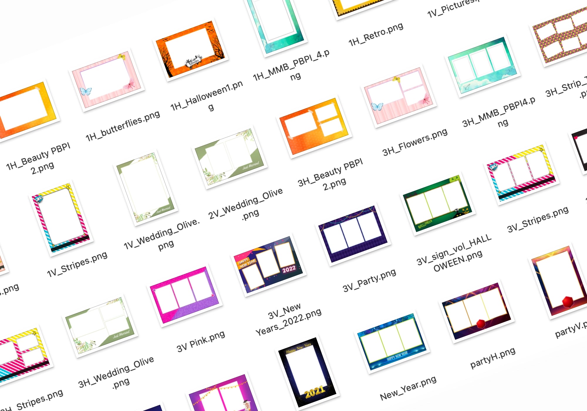 Select from 200+ layout templates to enhance photos with overlays for any event. Multiple Layout (horizontal, vertical and multi-photo), Fully Editable Files, and tailored to match any theme or branding.