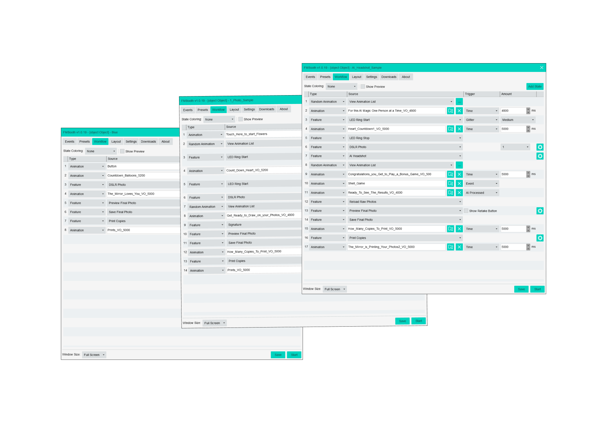 FMBooth allows you to download hundreds of pre-configured workflow presets right from the cloud. You’ll be able to select a preset to automatically load a workflow complete with the matching animations and engaging features to suit the event.