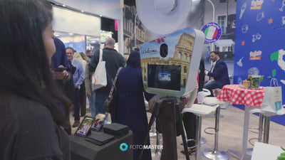 The original Retro Photo Booth, sleek and colorful, is designed for mobility and business efficiency. Powered by Foto Master's innovative software, it offers cutting-edge functionality that enhances any event.